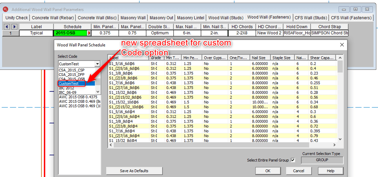 OPTION 3: Add a custom wood panel sheathing spreadsheet to the file location folder. Assign custom code name to your custom sheathing panel databases.