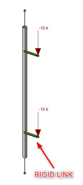 Then place your loading at these rigid link locations so that the offset is captured. See an example of this below.