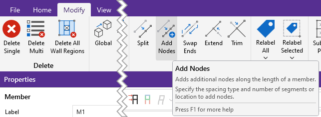 Add nodes along the pipe member where the antenna attachment loads will occur. You can use the Node Coordinates spreadsheet or Add Nodes under the Modify tab.