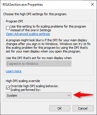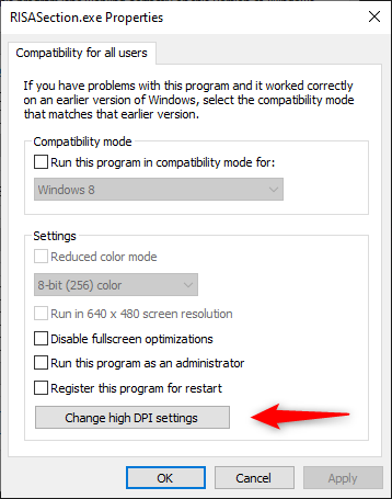 Next, choose to change high DPI settings.