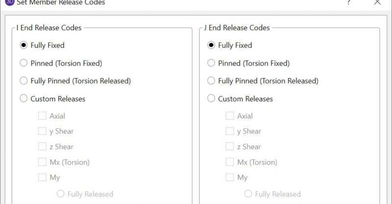 In RISA-3D, there are numerous options for Member End Releases which should not be confused with Boundary Conditions.