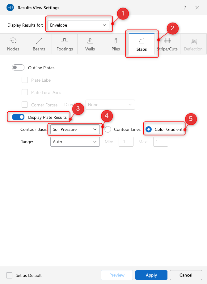 To display these contours, users can navigate to the Slabs tab in the Model Display Options by checking the box that says “Use Envelope Results”.